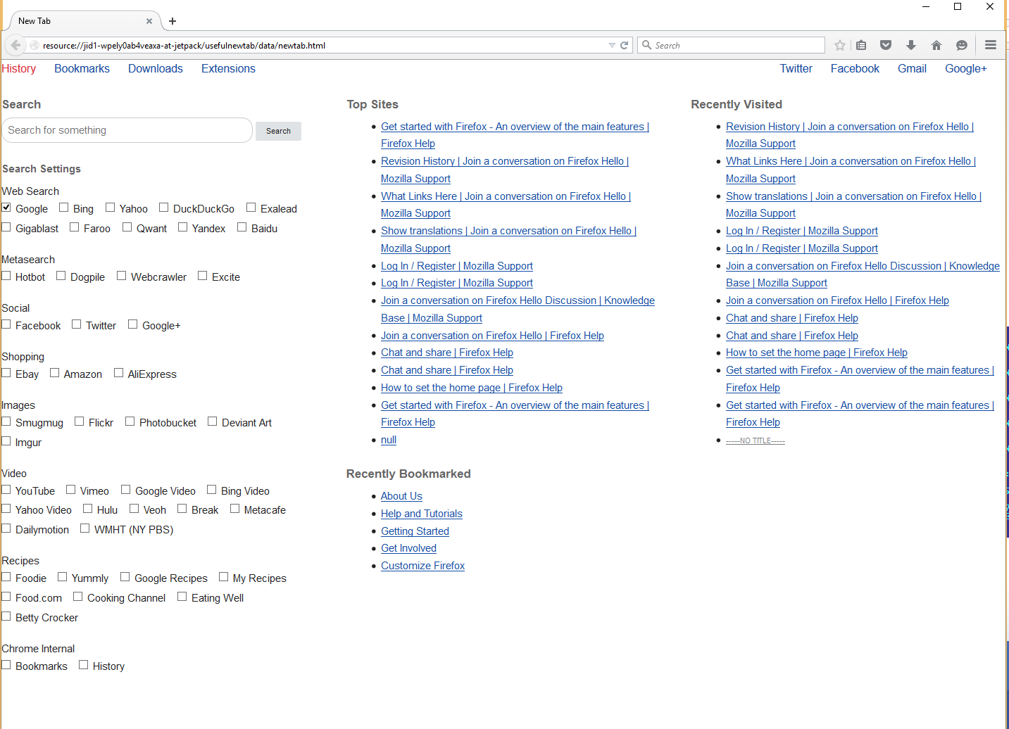 I also placed the source code for it on Github here: https://github.com/timtocci/Firefox-Useful-New-Tab-Page in case anyone wants to check out the source code.